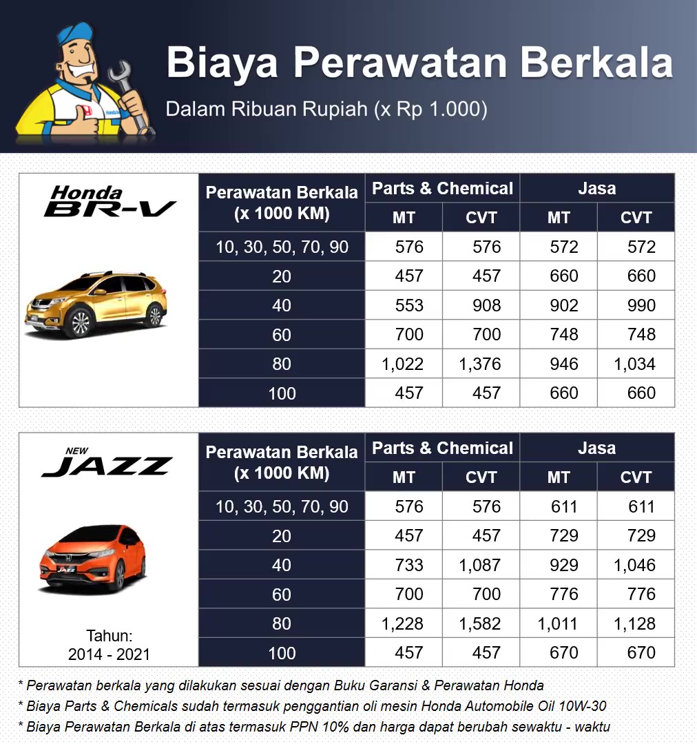 Estimasi Biaya Servis Honda BR-V dan Honda Jazz