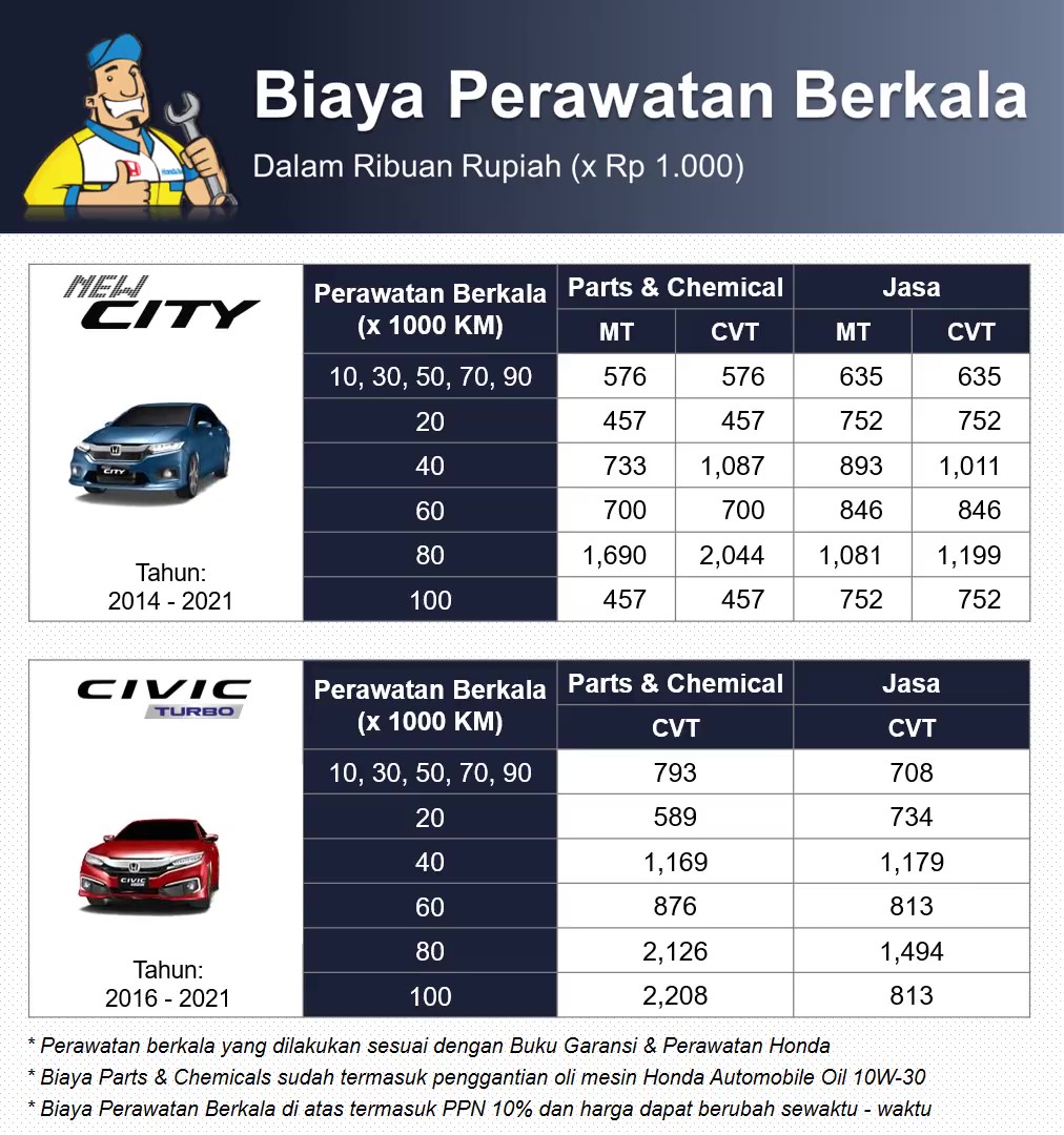 Estimasi Biaya Servis Honda City Sedan dan Honda Civic Sedan
