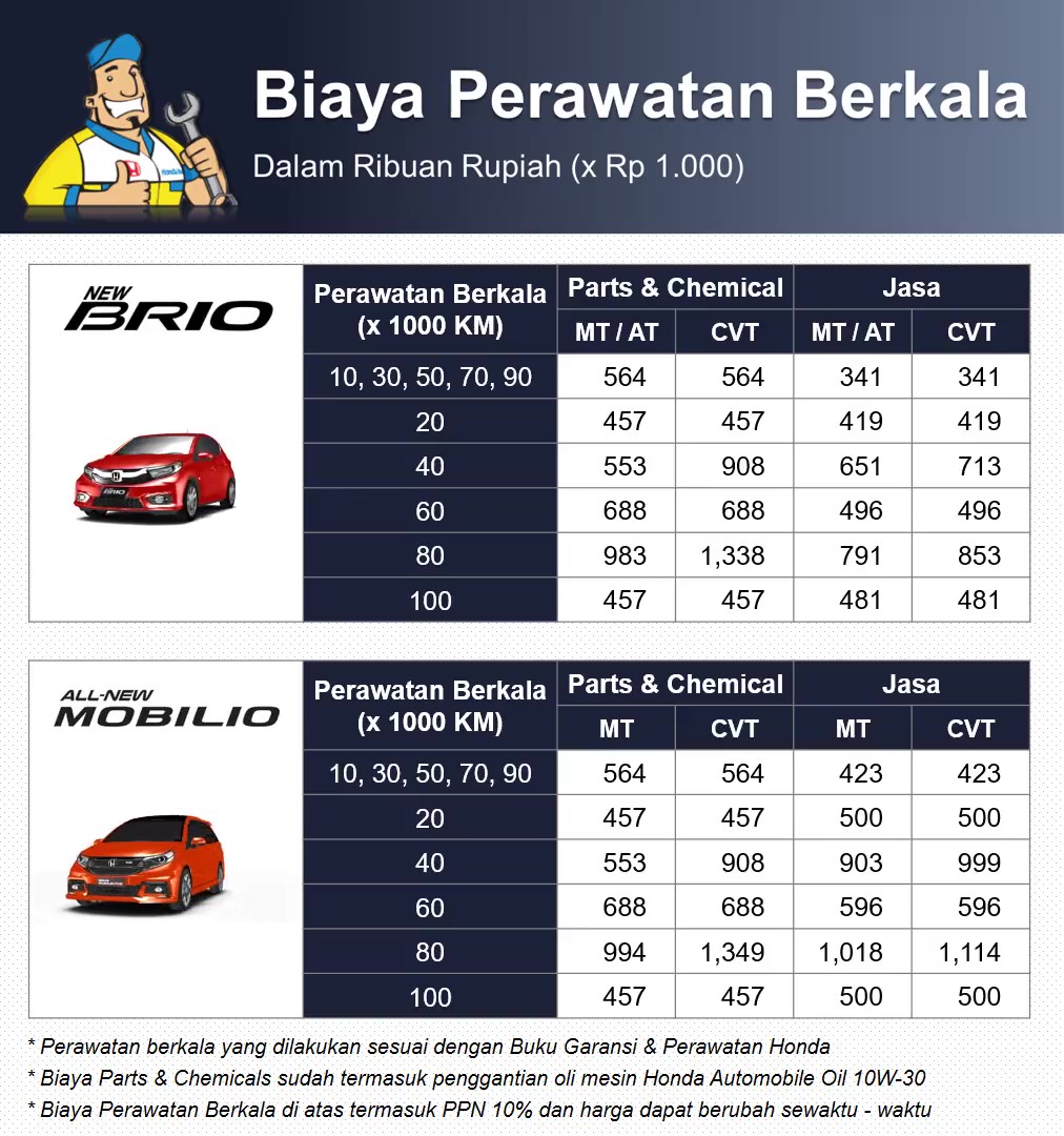 Estimasi Biaya Servis Honda Brio dan Honda Mobilio